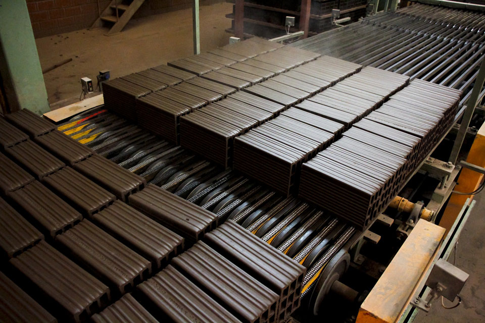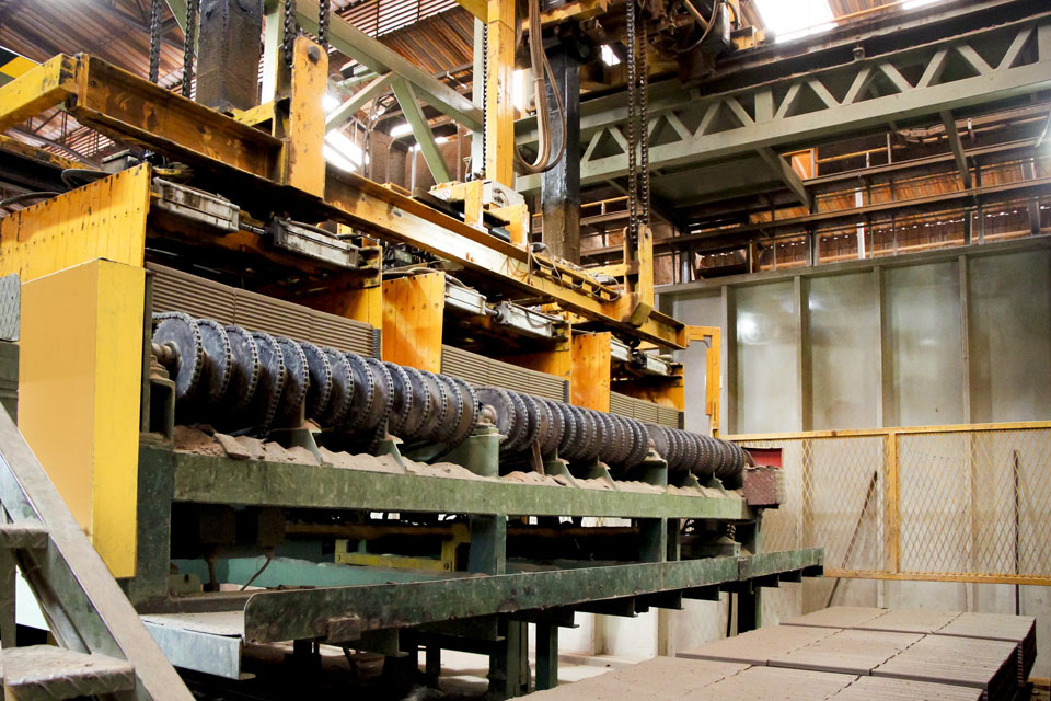 La cocción de los ladrillos se lleva a cabo mediante un HORNO TÚNEL CONTINUO, de bóveda plana suspendida y quemadores de gas laterales de alta velocidad para el precalentamiento. La temperatura de cocción es de 925ºC y el ciclo dura 14 hs. pudiendo variar este de acuerdo a la densidad de carga.