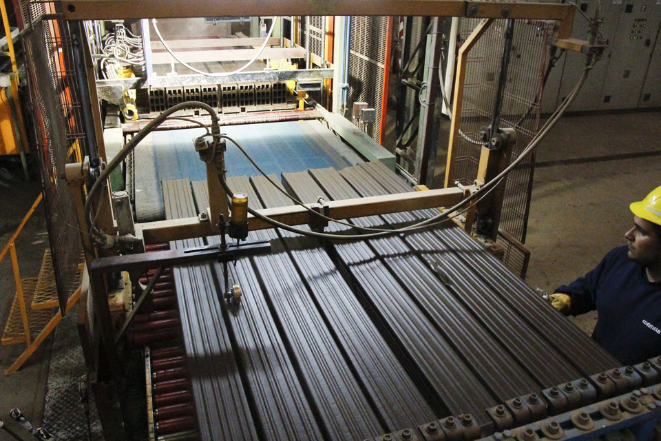 Una vez terminado el proceso de secado las piezas son desvinculadas de las bandejas que las transportaban volviendo estas últimas a recircular para ser cargadas nuevamente con material húmedo.