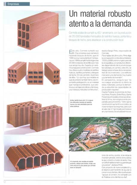 de 20.000 toneladas mensuales de ladrillos huecos, portantes y bloques